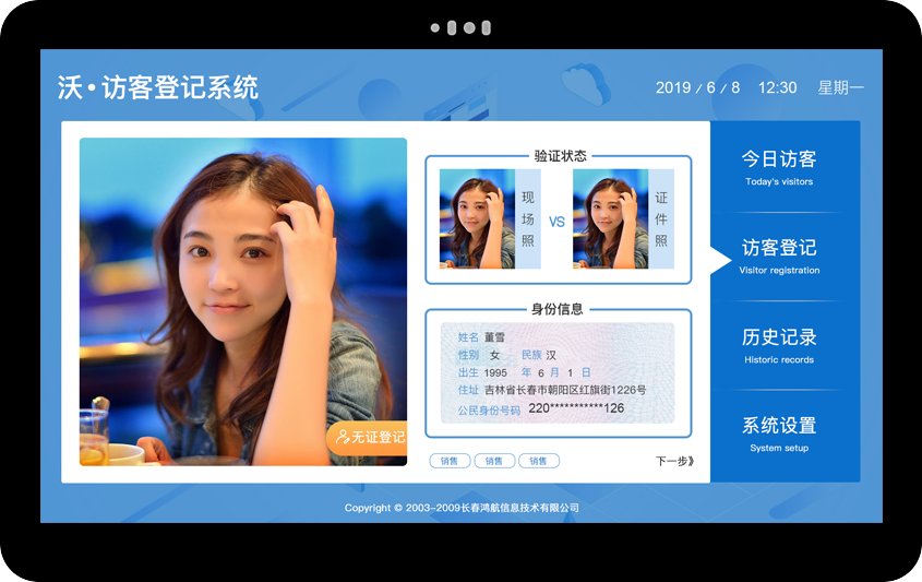 政府机关,企事业单位,学校,社区等,访客登记以及后台内部人员通行